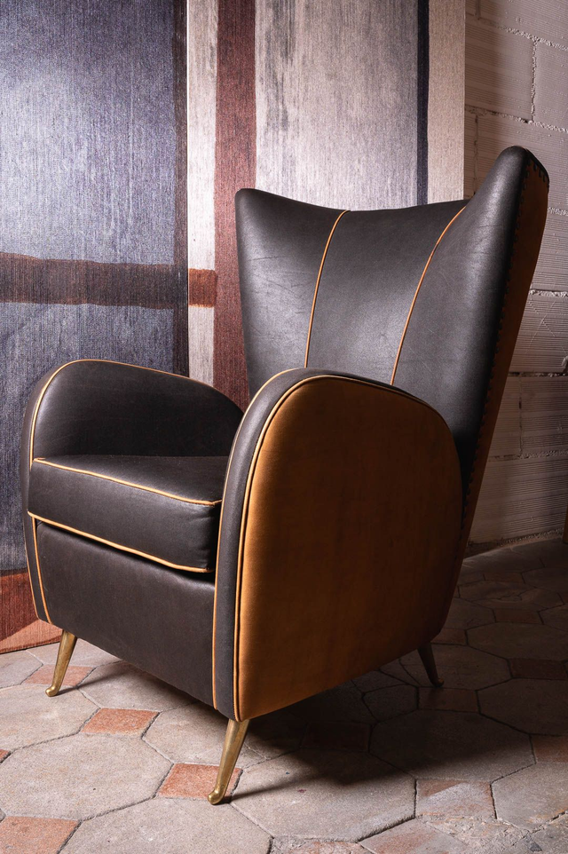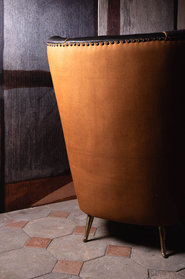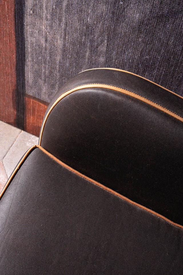A Original vintage armchair poltrona conversazione fumoir Hotel Bristol Merano design 1950 new fabric by Donghia