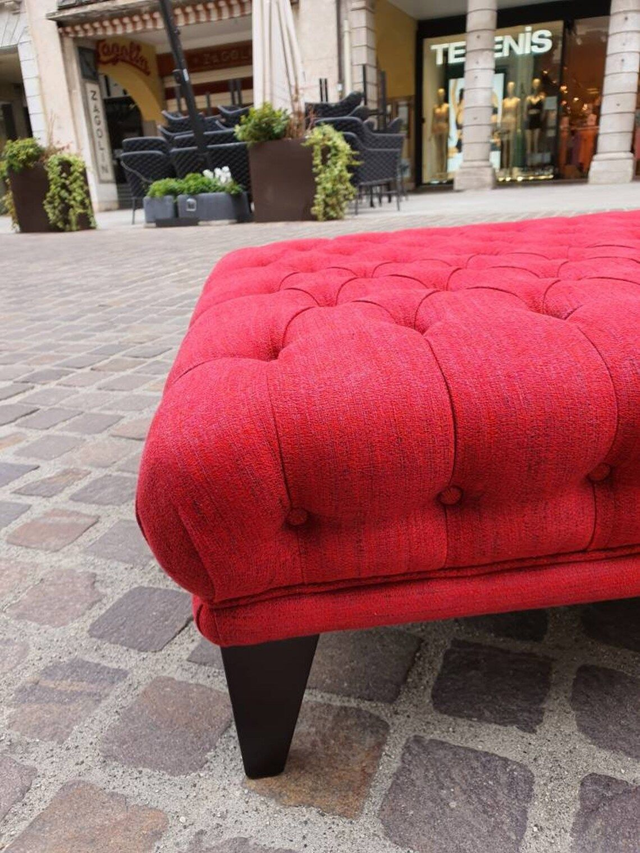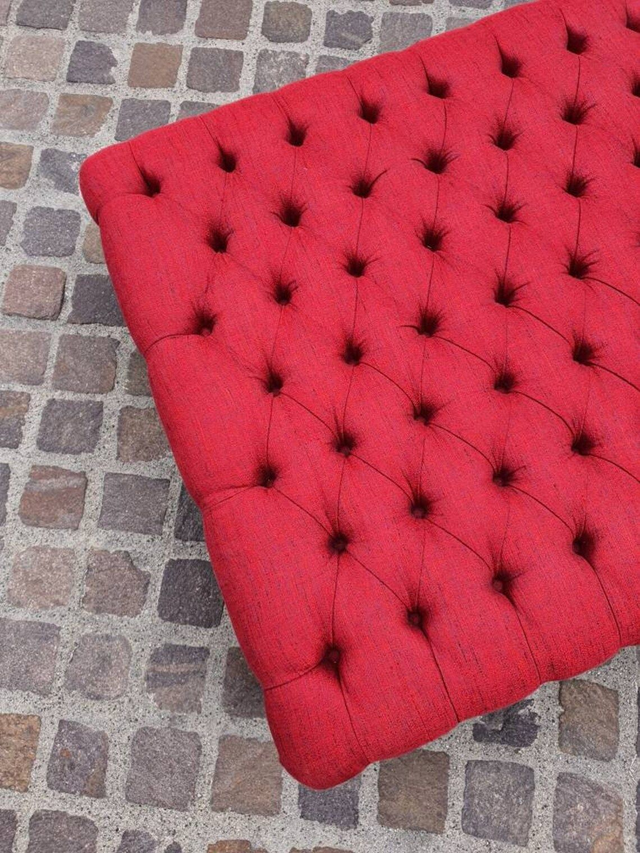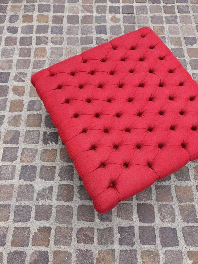 A Pierre Frey pouff ottoman capitonne luxury red fabric repose pieds living room soggiorno salotto home decor boho chic house decoration