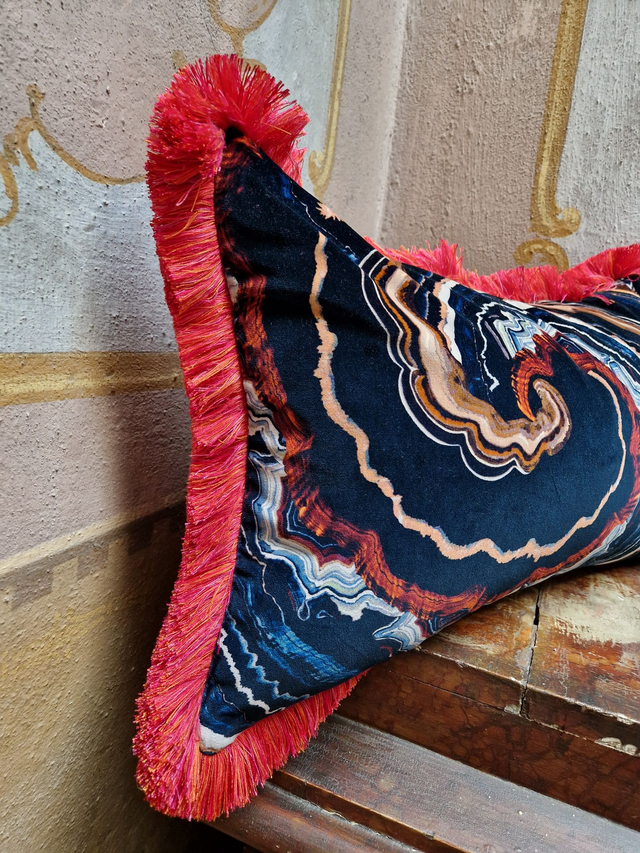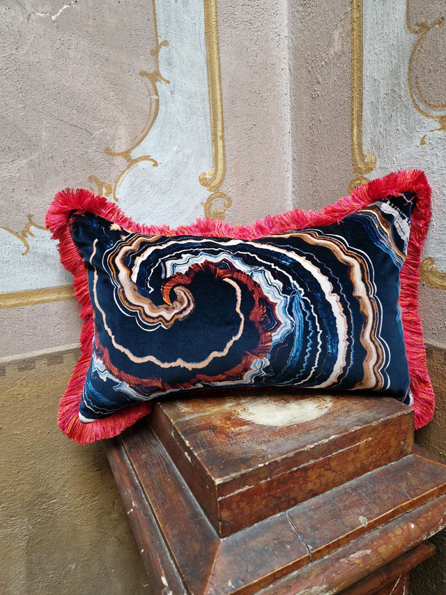 So beautiful decorative cover cushion (double face) RIGHT: printed velvet by Romo (malachite design) BACK: 100% coralline wool EDGE: coralline fringe Size: 45 x 65 cm Dry clean PAY ATTENTION: every decorative cushion is sold without its inner. If you would like to buy the inner part (100% duck) please ask us: write us a message. For much more info and/or pictures do not hesitate to contact us. Before to buy please ask us all the information you need. We ship all over the world by express courier. The shipping cost IS NOT INCLUDED into the item's price. BEFORE TO BUY THIS ITEM, please ask us the shipping cost.